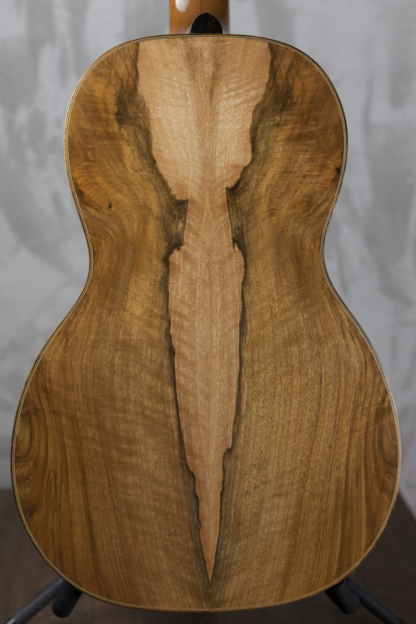 Bonjour, désolé pour cette réponse si tardive, votre commentaire nous à échappé. Cet instrument, tel qu’il est sur ce projet, coûte 2900€ livré en étui. Il nous revient justement ces jours ci pour être exposé au 31ème festival de la guitare d’Issoudun. Et dernière info, nous sommes en train de concevoir 2 nouveaux modèles de parlor d’exposition avec des dos / éclisses en noyer. Ils apparaitront sur ce site dans les mois à venir. A bientôt.