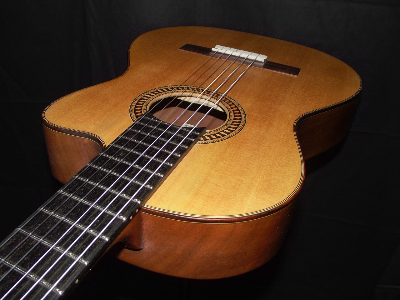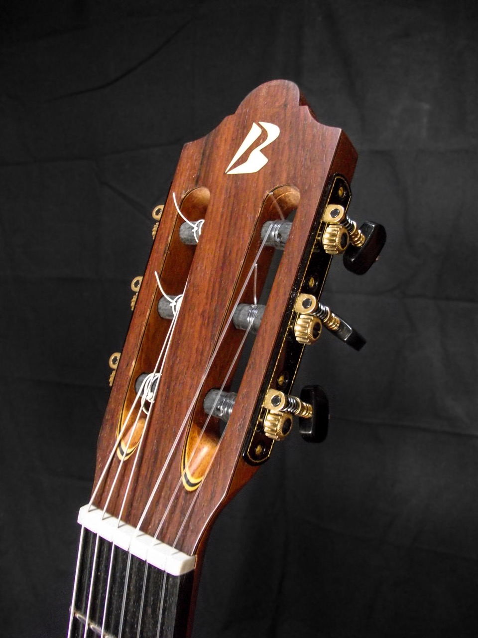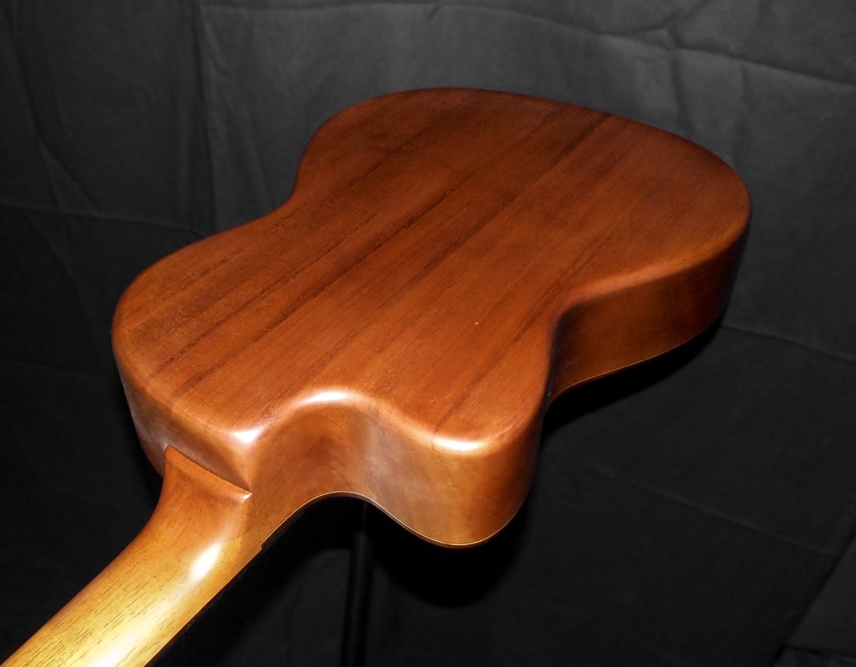 Modèle de guitare classique avec un fond épais et sans barrages et une ceinture d’éclisses taillée dans la masse plutôt que cintrée, dans la continuité de la #62. Cette construction est inspirée de certains modèles de guitares GODIN avec une recherche approfondie sur l’acoustique de l’instrument. Il s’agit bien d’une guitare entièrement acoustique réalisée par Pierre.